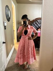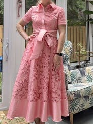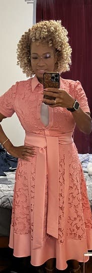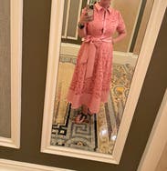 I have never received so many compliments on a dress before. I ordered it for my sister’s baby shower because I didn’t own anything pink and she’s having a girl (ironically she wore a blue dress 🤷🏻♀️). But I also wound up also wearing it to drop my kids off at school (was definitely the best dressed mom 🏆), to the grocery store, on zoom calls—pretty much any chance I could before I had to turn it back in. My husband joked that I really got my money’s worth out of this rental because I never wanted to take it off. The only issue was that one of the buttons kept popping open because I have a large bust.