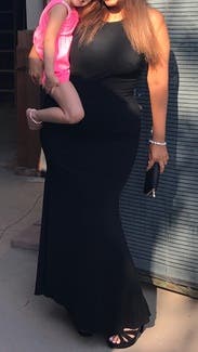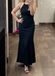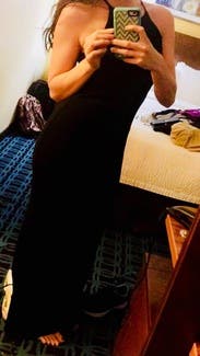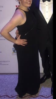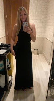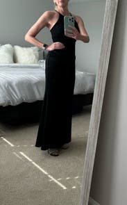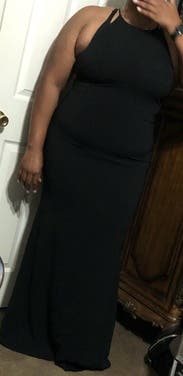 Rented this dress for my friends end of summer, formal evening wedding. It hugged my curves and made me feel beautiful and sexy, but even the long wound up being too short for my liking. I tried on the 16, but with my small waist and narrow ribcage (and despite my 36F bust) it was too baggy up top. I experienced the same issues as another reviewer, where the lining of the dress twisted around all night and I was constantly adjusting it. Overall the rental worked well for me. I wish RTR had more simple sexy black gowns in my size and long length!