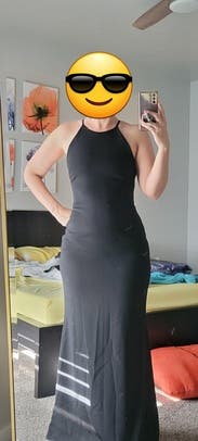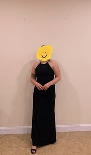 Worked for the occasion of a black tie wedding. A little bit loose on top but overall fit well, but just a plain black dress nothing special about it.