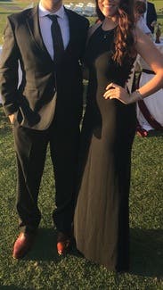Worked perfectly for a black tie optional wedding! Dress fits true to size- simple and understated but perfect for a formal occasion.