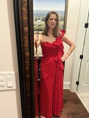 I wore this for professional family photos, and the red was a stunning contrast to the green background. The dress fell beautifully. I was able to wear a strapless bra. I’m 5‘9“ and it was the right length with 4 inch heels.