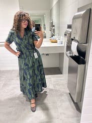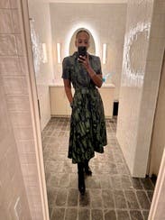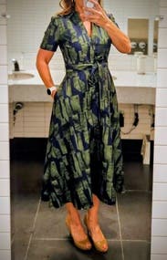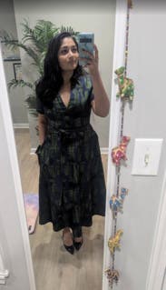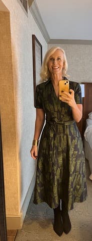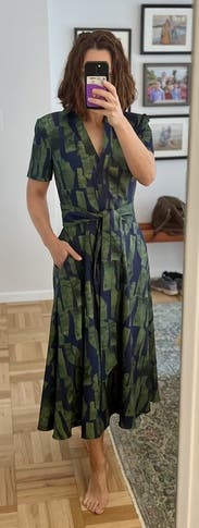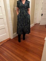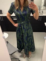 Loved this dress for work! Super flattering and comfortable all day. The print and colors are gorgeous in person, and the fit at the waist is perfect. Got lots of compliments!