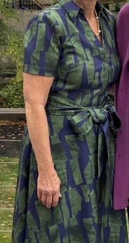 Hangs well, feels lovely, huge pockets! A little tight in the chest when sitting but not a real issue. It made me feel amazing all evening. Fabric is gorgeous. Travelled well without wrinkling. Does require someone else to help with zipper!