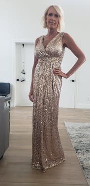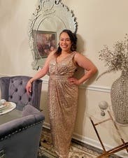 The dress was beautiful and I got so many compliments. The zipper was really hard and you need someone else around to help you zip it. The sequence made it a little hard to dance but totally worth it. Its a great dress and made me feel super comfortable the whole night.