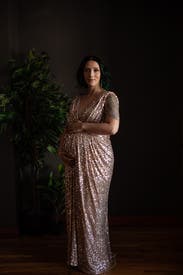 I ordered this dress for maternity photos in my third trimester (37 weeks). I normally wear a 16L, so I ordered the 18L for belly room. The top ran big on me since I sized up, but I was still able to make it work! I liked that the cut of the shoulders allowed me to wear a regular bra, and didn't require me to purchase a new strapless or shape-wear. This dress is very comfortable and glamorous! Couldn't be happier! Sizing help: 5' 10", currently 220lbs in pregnancy, previously 190lbs