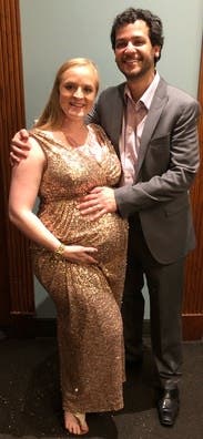 I loved this dress! Took a little work to get it zipped, because I had no clue what size I would need at 33 weeks pregnant. But it worked great. I safety pinned the bra straps at the top and closed the front a little more. Everyone loved and tons of compliments! I felt comfortable the whole evening in it. I would normally get a shorter length, but I knew the bump would pull the bottom up, so the regular length hit the floor just right!