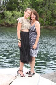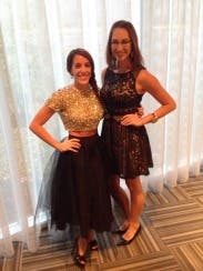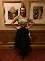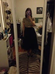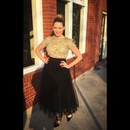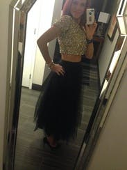 Sorry I didn't get a better picture. This outfit is great - needs minimal jewelry cause it's already blingy enough! I think it runs a little small, as I am usually a 4. Size 6 was a perfect. I'm 32D, 5"5 almost 130 lbs - generally smaller in the torso and I'm bigger in the legs, so I really feel that depending on the size of your own midriff, you may want to size up one.. I really loved this outfit! It was special. I just regret that we didn't take more pictures! Suprisingly comfortable for sequins - usually they tend to scratch, but this dress was made well enough that it remained comfortable, even around the arms and neckline. Skirt and top are separate, so don't forget to order them separately (I made that mistake, but RTR helped me fix it right away and even waived the overnight shipping! Thanks, by the way, RTR!