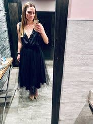 I rented a size 10 due to it being the only size available in the store. I belted it in order to fit around my waist. I received so many compliments on Thanksgiving with this look. Paired it with a pair of combat boots to dress it down for family.
