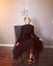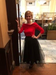 This is my second encounter with rent the runway clothes. The first time, nothing fit AT ALL and I couldn't wear them. This skirt fit fine but I am way too short -- (5'6" -- for it to look festive and elegant. When I put it on, hoping to wear it with boots and a sparkly top to my own 50th birthday party, I looked like a toddler dressing up for a tea party with her stuffed animals. So, instead, I wore it with hiking boots and jeans on my birthday hike instead. That was quite fun.