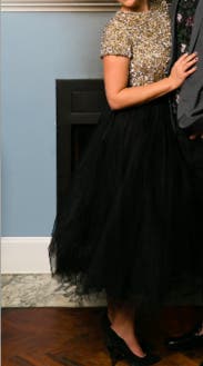 What's better then a show-stopping full midi skirt? Nothing. Wore to wedding. Paired with Badgley Mischka gold top. So many compliments. Enjoy!