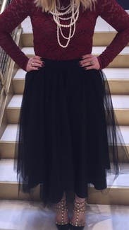 Loved! Such a fun, easy skirt. Wore it with a simple black bodysuit and felt like a ballerina ;). Wore it all day for work from home and then made dinner and then took pics. Super fun and i hope to rent again!