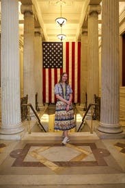 Wore this for a more casual work event. A little big overall, but not enough for me to suggest sizing down (I’m also small up top). Does wrinkle when packed, but not as noticeable due to the pattern. Has pockets! Easy for warm weather. Overall, a great rental.