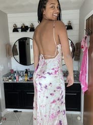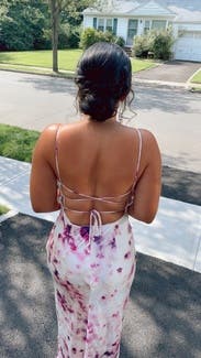 This is a stunning dress can be dressed up or down. Loved the ties and open back. Received so many compliments!