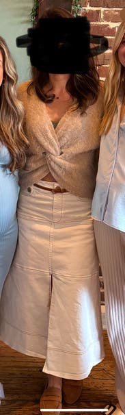 I love this when worn with the v in the front. Will def buy. Perfect color for autumn toned gals. It’s really itchy incase anyone is sensitive. It bugged me at first but then I got used to it.