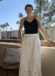 I’ve tried on a LOT of white skirts and this one is the WINNER. The eyelet elevates a traditional style. It has a liner, pockets and is a pull on style. The waist doesn’t have too much elastic gathering which makes it flattering. *Note: since there is no zipper, it may be a little harder to pull up if you are curvier at the hips. So many ways to wear this one!