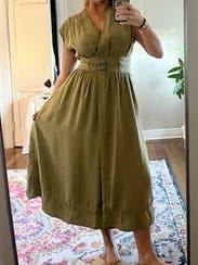 I loved this olive khaki dress. I got compliments and felt comfortable all day. It’s a great dress, especially for the tall ladies!