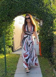 I was pleasantly surprised with the dress. It is a little complicated to figure out the ties but once that is done, it is so beautiful. The pattern and color combo would look good on anybody. I have seen the dress on the RTR website for quite some time but what is great this is a timeless dress that will never go out of style. it’s light fabric kept me cool all night. It also can be adjusted with the back ties for a lower cut in the front or tie them tighter for more support. Because of this, the stress can be worn out at night for date night to a daytime wedding or just an evening of partying with the girls.
