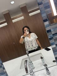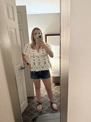 Should have sized down but not sure what my size is right now with postpartum. Felt flows and cute. Loved with shorts and jeans. Easy to breastfeed under shirt.