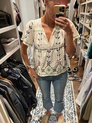 Loved this top - easy to style and embroidered details dress it up a bit.