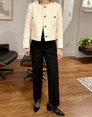 Loved this jacket. Buttons wouldn’t close over my chest but that’s a me problem. Felt very classy and chic wearing this.