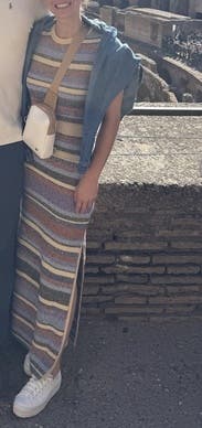 Wore this too many times to count. Was my airplane dress to and from Paris and Cancun for hot summer days. The dress is knit with little mini wholes to allow breeze and air on a scorching hot day.