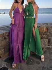 Wore to a Greek wedding & the color was just perfect. It is quite a bit of material but was easy to manage & pretty comfortable/flowy. I felt like a proper goddess. It is also that awesome pleated fabric that doesn’t wrinkle when you travel!!! Big plus