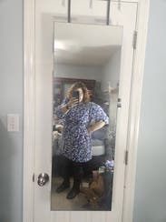 This dress looks better in person than I was able to capture in a photo, it’s very cute. The puffy sleeves felt a bit 80s retro. It was perfect for an end of summer casual cocktail hour. The cut is generous with a belt that ties at the waist, making it suitable for almost anyone. I usually wear a 4, sometimes 2, and this fit well. I might have ordered the 2 instead due to the generous fit, but I didn’t want it to be any shorter (I’m 5’2” and this is about as short as I like to go). The blue is a pretty color, the background color is more off white than a true white, which I didn’t think I would like, but once I put it on I loved it. A great combination of style and comfort. I wore platform sandals but think it would look really cute with white sneakers or flats. Will definitely wear again before returning.