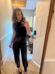 So many compliments on these! I loved the ankle detail buttons to either taper it in or keep wide legged. As comfy as baggy jeans but so edgy! The quilted leather look was on point - marched my Chanel quilted tote
