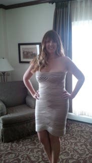 I call this my "Million Dollar Dress" because it literally made me feel like a million dollars. Very well made and hugged every curve perfectly. Sexy and classy, it stood out in a sea of black dresses in Vegas. The fit is very small so make sure to size up 2 sizes. Also make sure to wear Spanx, as it will smooth everything out and give the perfect silhouette. Love RTR and this dress so much I might have to come back to it for another event!