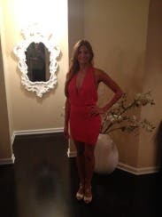 I rented dresses for my friends to wear in Vegas- this went to my friend Holly! Her review: "The dress fabric is very comfortable and the clasp at the top of the dress helps to keep your boobs from falling out of the dress. It is truly for a bustier person with an hour glass figure. The dress hugs to your figure, but it does an excellent job of hiding a little extra pudge in the stomach after a full meal. I would not suggest a non-busty girl rent this dress unless she has a lot of boob tape to keep from exposing yourself. I wear a 6 to 8 and wore the small in this dress."