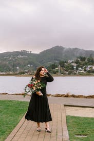 I rented this Beatrice .b off-shoulder dress for a mountain wedding, and it ended up being such a timeless, elegant choice. The long sleeves and draped neckline felt sophisticated and seasonally appropriate, and the flowy skirt had the perfect amount of movement — classic but understated. I ordered a medium, which fit fine overall, but I probably could’ve gone with a small for a neater fit through the arms, shoulders, and waist. The sleeves ran a bit long, and the neckline did need occasional adjusting (pretty typical for an off-shoulder cut like this). Styled it with a vintage fur wrap for warmth, and it was the perfect mix of old-world and modern.