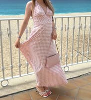 Pink gingham (100% Polyester). Casual dress. Halter neck. Size zipper closure. 43" from shoulder to hemline. Imported.