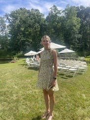 Wore this for my Sis-in-laws bridal shower! It's a great spring color (especially if you're tanner than I was) and fit perfectly! The neckline is unique with the cute bow!