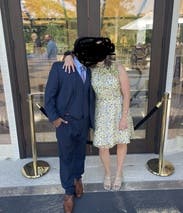 Rented this as a wedding dress option, but it ultimately didn’t feel like me or the vibe of the bride+groom. The halter neck is also kind of odd in that it’s not a standard halter, but some kind of one shoulder tie thing? Idk. Threw me off.