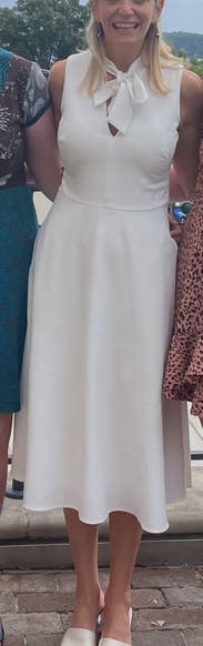 Chose this last minute because I needed something church appropriate for a baptism. Ended up really liking it! Flattering fit and feels old fashioned and classic.