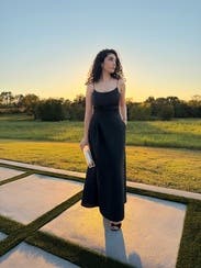 Absolutely loved this dress. Usually 2-4 and sized up- glad I did because the top is stiff. I’m 5’2 and wore 3 inch heels and it was right on the ground. Def a good go-to black tie dress and was comfy all night!