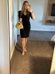 This dress is a dream! Beautiful, quality fabric and great style. I hated to return it! Perfect LBD with a little extra something. I wore it to a work event and it was just conservative enough. Would totally rent again. Amazing sleeves and very comfy.