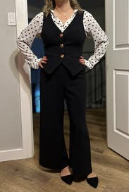 I absolutely adored this jumpsuit! So classy & comfortable & on trend with the vest. Straps were a bit long but was able to safety pin for the right fit. Probably would be perfect if I was a few inches taller.