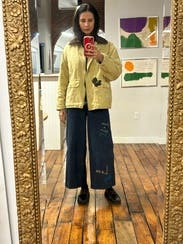 Yellow (Shell 100% Cotton. Collar: 100% Cotton. Lining 100% Cotton. Filling 100% Polyester). Jackets. Long Sleeve. Front Button Closure. Shoulder To Hemline Length: 27.5". Imported.