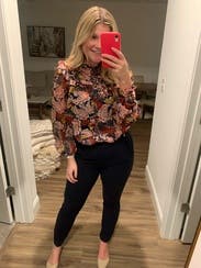 I really liked this top -- the print is pretty and sophisticated. I paired it with black pants and a blazer and another time with jeans. It was a nice cut and flattering fit. Runs a little small -- I would usually wear an 8 and took a 10 which fit perfectly.