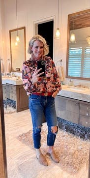 I love this top! So cute, great colors. I do recommend going one size up at least. It is a little small in the shoulders.