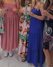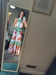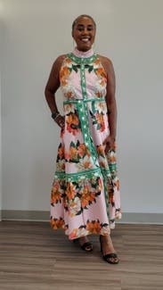 This dress was so fun and colorful! The pattern and mix of pinks, oranges, and greens made it a perfect choice for an outdoor summer event. The fabric was lightweight and comfortable, and the ruffled collar with the belted waist gave it such a flattering, feminine shape. I received so many compliments and felt great wearing it all day. Highly recommend for garden parties, showers, or any daytime occasion.
