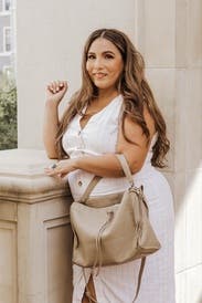 This is a great neutral bag, used it daily! Fits a generous amount of necessities -- especially if you're a mom.
