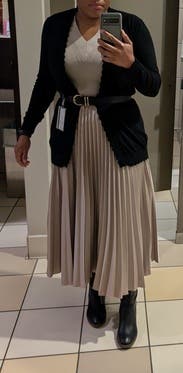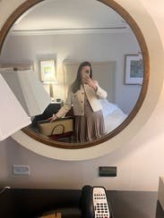 Somehow the skirt didn't wrinkle after being in my suitcase. Huge bonus. Wore with a suit jacket and felt amazing all day. Probably would have worn again but I think I needed the smaller size which wasn't available when I was renting.