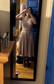 Will be renting this again in warmer months! I wore this a few times with different sweaters on top and got so many compliments. Fits so well!