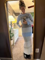 Loved the look of this full length sweater dress. And so versatile! I actually wore this twice (almost a third) to dinner at a friend’s house, a work event, and brunch. Paired well with black and cream colored boots. Lots of compliments. Would rent again!