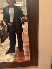 This blazer was perfect for pairing with a dress or pants. The navy blue matches everything. It's comfortable and sleek.