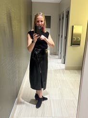 Perfect balance of sexy, chic and cool that's appropriate for work. I LOVE this dress. An elevated all black look!