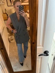 I typically work from home but had to dress professionally for an in-person meeting, and I felt so cool in this! I'm a size 8 and originally ordered the 4 based on reviews, but ended up swapping and wearing the 2. I also used a safety pin to secure the inside belt to the lapel to avoid gapping. I'd recommend, but SIZE DOWN!