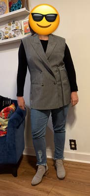 I’ve rented this vest twice now and absolutely love it, but it is HUGE! I typically wear a small and I always get this in a zero and it’s still too big for me. I absolutely love this vest pair so well with slacks for a work event or you can even dress it up for dinner or a night out. My only issue was as fast as the buttons are any weird position and the vest doesn’t completely close so there’s always a tiny gap that’s open. Besides that, I absolutely love this vest and I always pair it with the slacks from the same brand that have a similar design to create a matching set.
